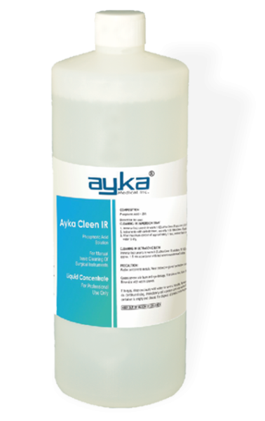 Immerse instruments in warm 1–2% Ayka Clean IR solution. Contact time: 15 min.
